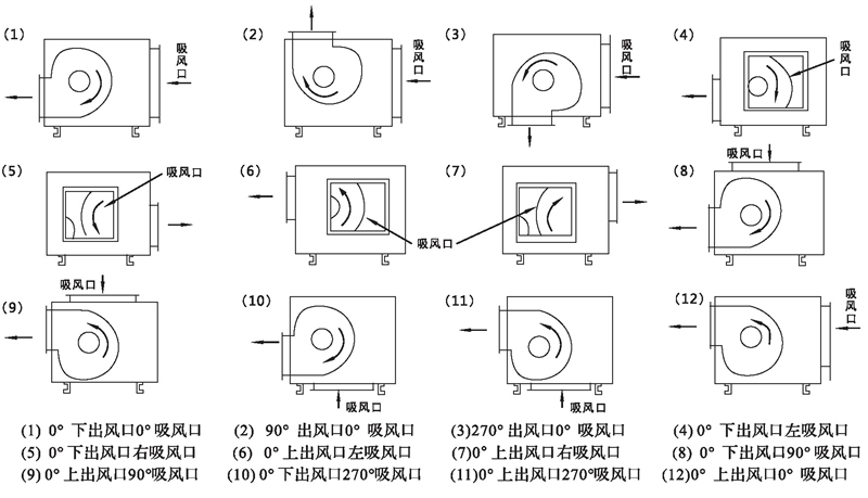 三、HTFC型風機進出風口位置編號表