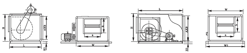 本系列產品分為A型和B型兩種,電動機安裝在箱體外的為A型,經耐高溫試驗,在煙氣溫度大于280七高溫情況下,能連續運轉30分鐘以上,達到消防排煙之目的,配用雙速電機后,既可在低速通風換氣,又可在高速時消防排煙,為一機兩用:電動機安裝在箱體內的為B型,一般作送排通風使用。