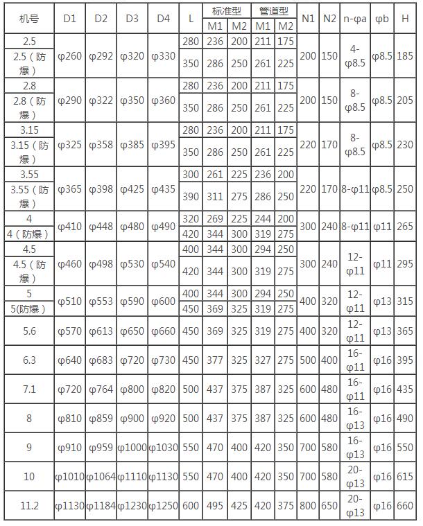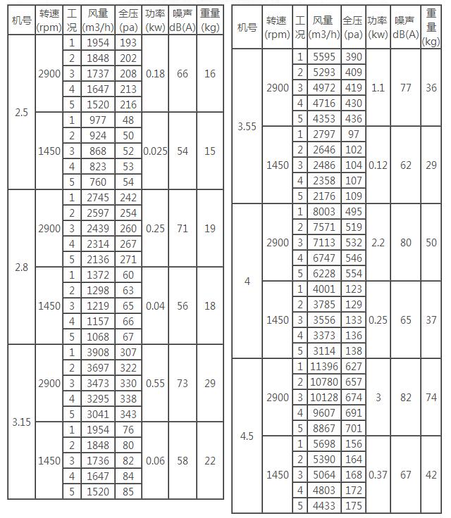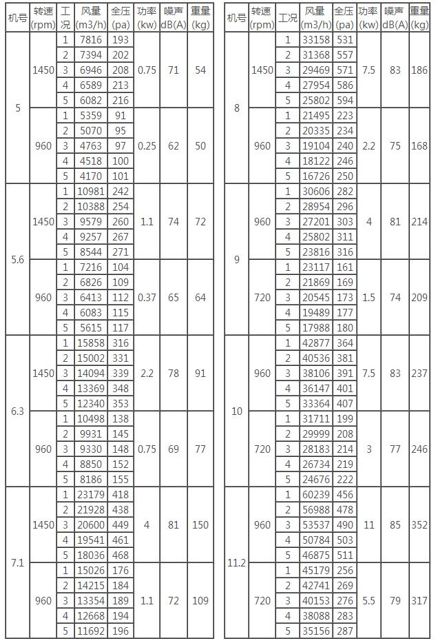 二、CDZ型低噪聲軸流風(fēng)機(jī)性能參數(shù)表