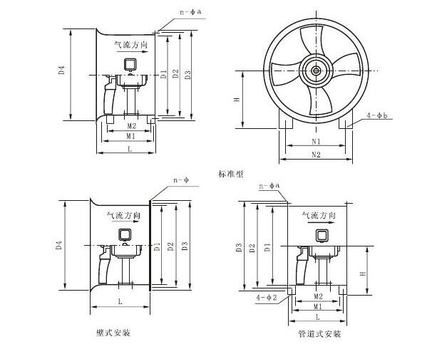 三、CDZ型低噪聲軸流風(fēng)機(jī)外形及安裝尺寸