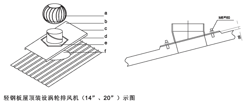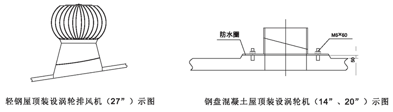DWT-IV型(無電機)屋頂渦輪排風機屋面安裝示圖說明